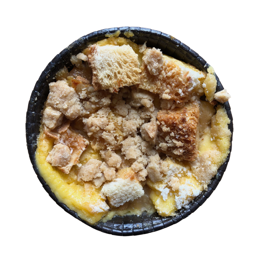 Bread pudding flavors come frozen and ready to eat. Re-heat and enjoy!